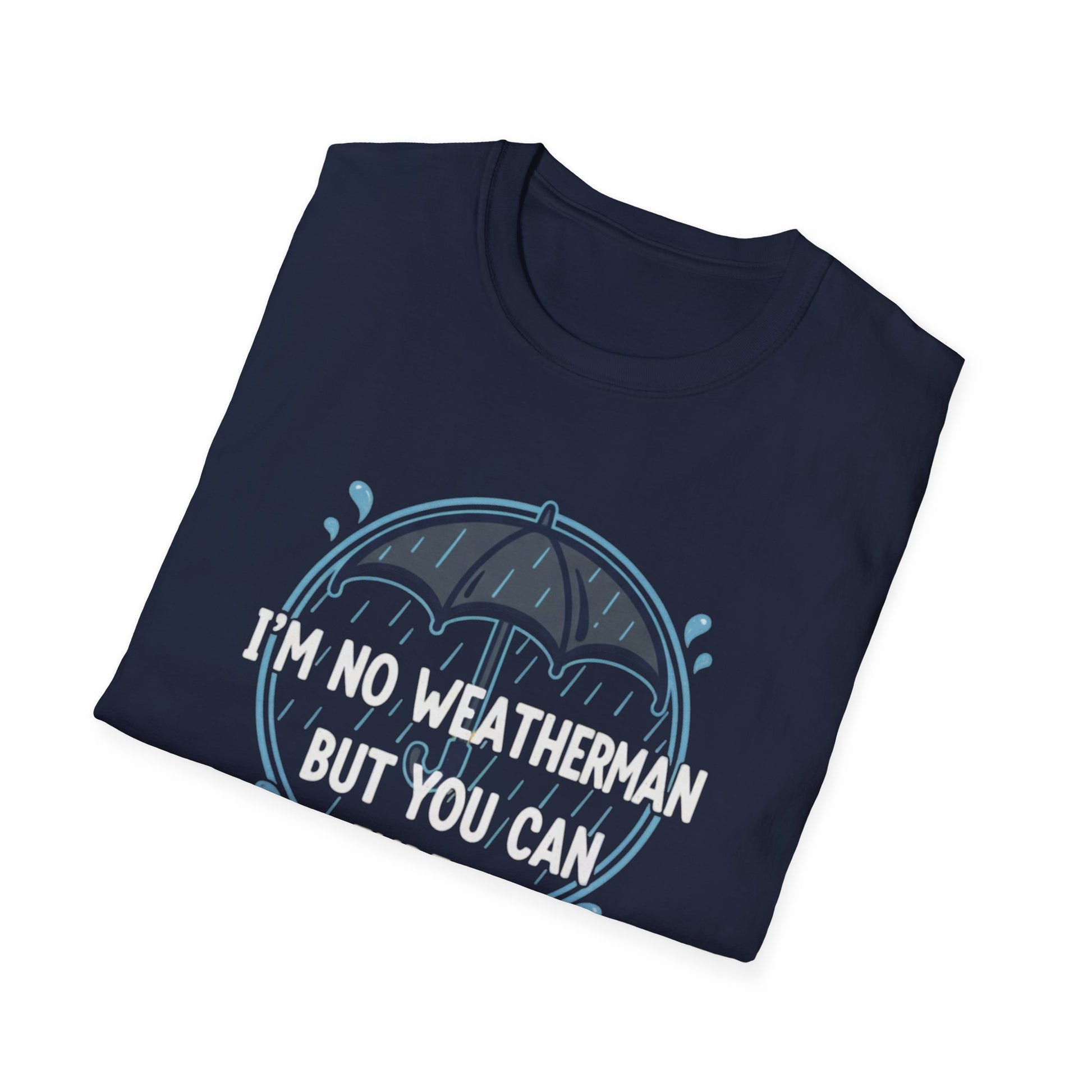 This T-Shirt features a design of an umbrella and raindrops with a humorous quote. It gives off a fun and quirky vibe, perfect for those who enjoy playful and witty designs. This T-Shirt is great for casual wear and can be a conversation starter in social settings. It is relevant for rainy days, casual outings, and everyday wear.